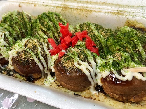 国内産の小豆を使用した、粒あんが入ったどんぶり焼、可愛いパンダ焼、揚げたてポテト。たれにこだわったたこ焼。