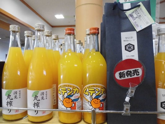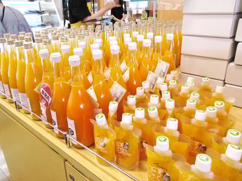宇和海産の太陽の光と潮風で育った紅マドンナジュースをはじめ、各種果汁100%ストレートジュースが勢揃い!